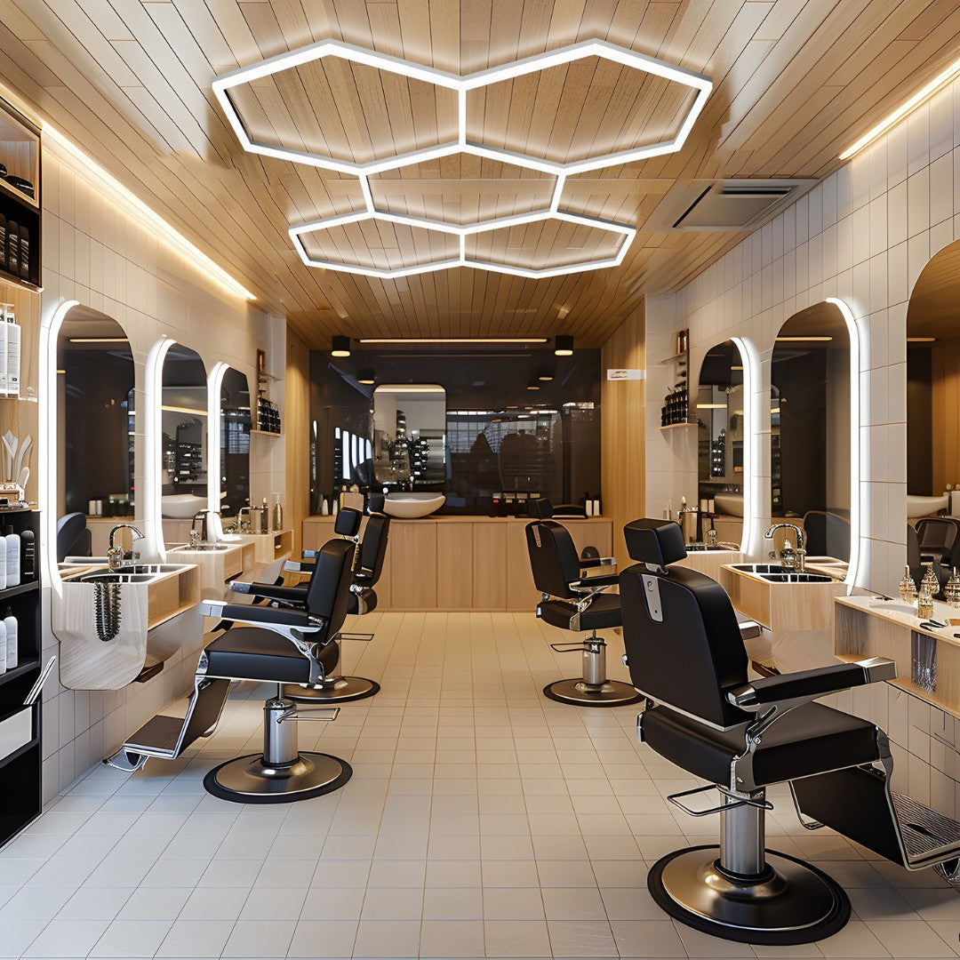 Ce kit hexagonal 192W est pensé pour les professionnels souhaitant combiner esthétique et performance. Sa forme graphique et sa lumière blanche froide structurent l’espace tout en sublimant les éléments exposés : véhicules, produits de vente ou ambiance décorative. Il transforme chaque pièce en un lieu de caractère, valorisant à la fois l’architecture et l’activité exercée.