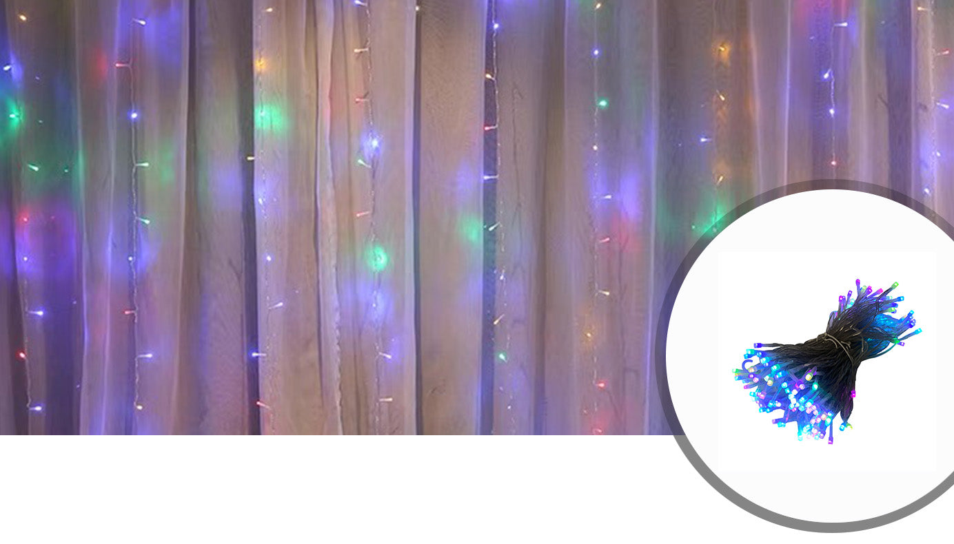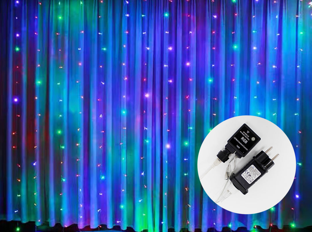 Rideau Connecté Multicolore 220V 3M IP44 180 LED (Avec Transfo)