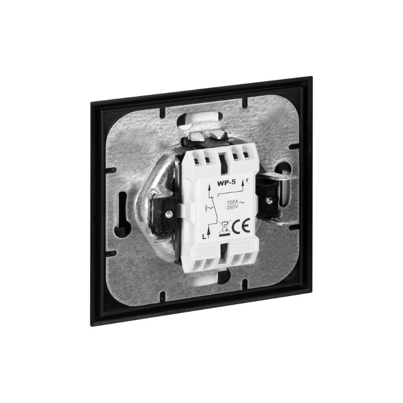 Version va-et-vient : ce module s'installe obligatoirement par paire pour permettre le pilotage d'un même point lumineux depuis deux emplacements différents. Le cadre et le bouton généreux en finition noire s'intègrent aux intérieurs classiques comme industriels.