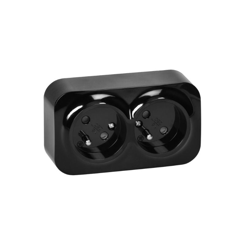 Prise Double avec Terre Saillie - Noir