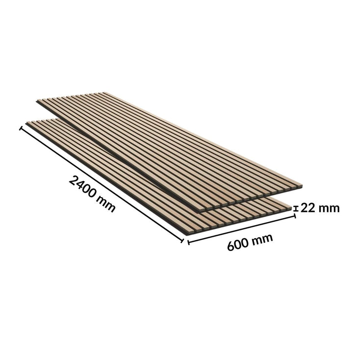 Lot de 6 Panneaux Acoustiques Muraux - Tasseaux Finition Noyer - Fond Noir - 240x60x2,2 cm