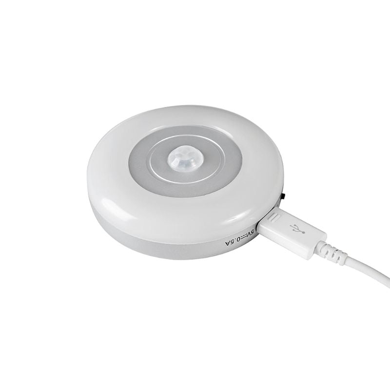 Luminária LED recarregável com detector de movimento feito de plástico com Acabamento cinza metálico que se torna perfeito para o interior do interior dos móveis na casa ou salas com pouca passagem: lavanderia, garagem, escadas, quartos/ bebês infantis, corredor ...